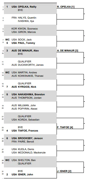 John Isner also has a 1st round BYE and he might face a qualifier or native wild card, Ben Shelton, in round two.