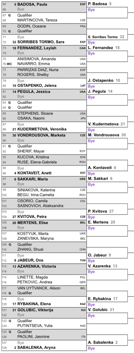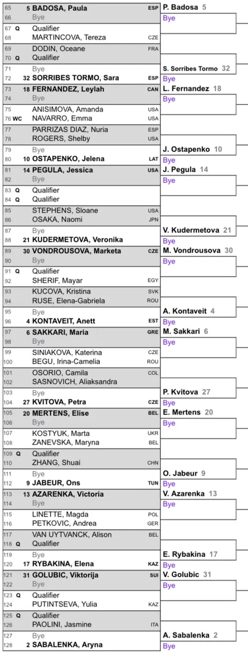 Greek star Maria Sakkari rounds out the bottom half of the draw, where she could meet another Grand Slam champion in Petra Kvitová. The winner of that match could face either the big-hitting Elise Mertens or the crafty Ons Jabeur in the fourth round.