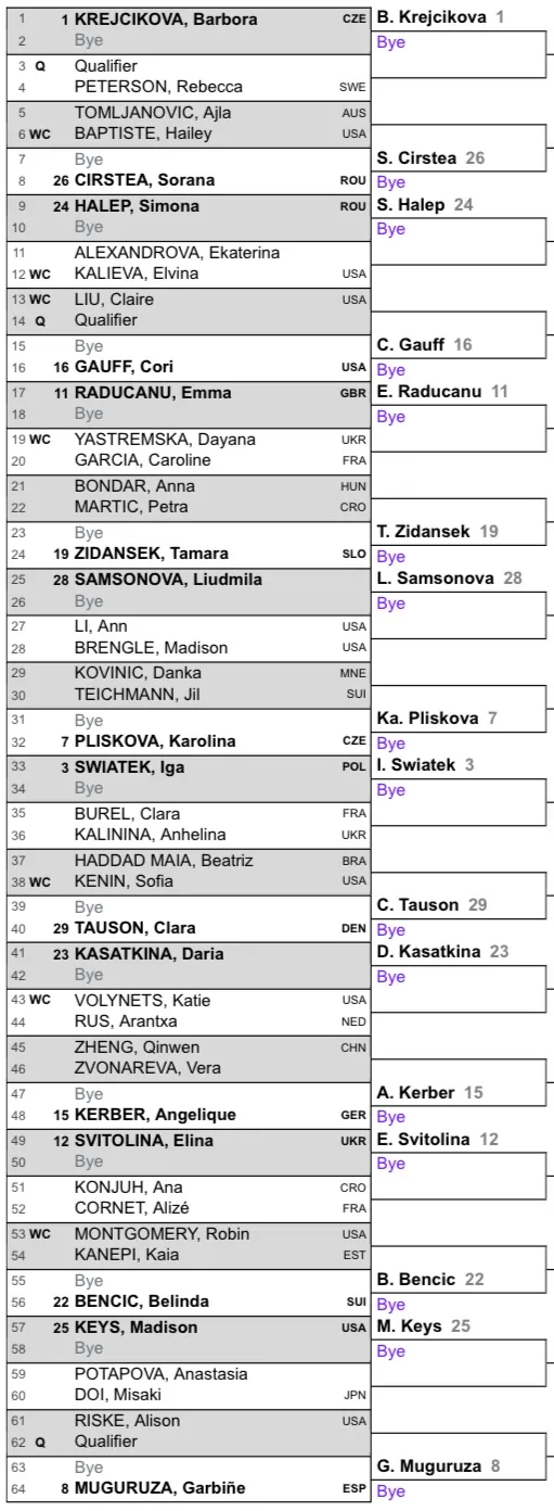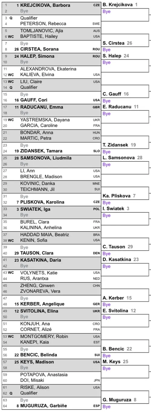 Barbora Krejcikova is the top seed, and could face either Simona Halep or Coco Gauff in the fourth round.