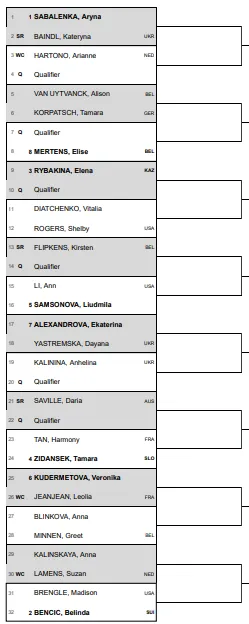 Down the draw, it could be Elise Mertens for her and that will be a very tricky match. The 2nd seed is Belinda Bencic and she will start off against Madison Brengle. Anna Kalinskaya potentially waits for her in round two so that's not an easy draw.