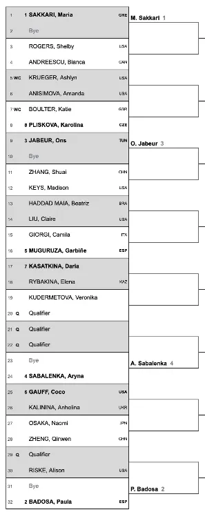 Garbine Muguruza who faces Camila Giorgi in round one. That should be a spectacular one considering the personalities of both. Wimbledon champion Elena Rybakina returns to the courts and she faces Daria Kasatkina in round one.
