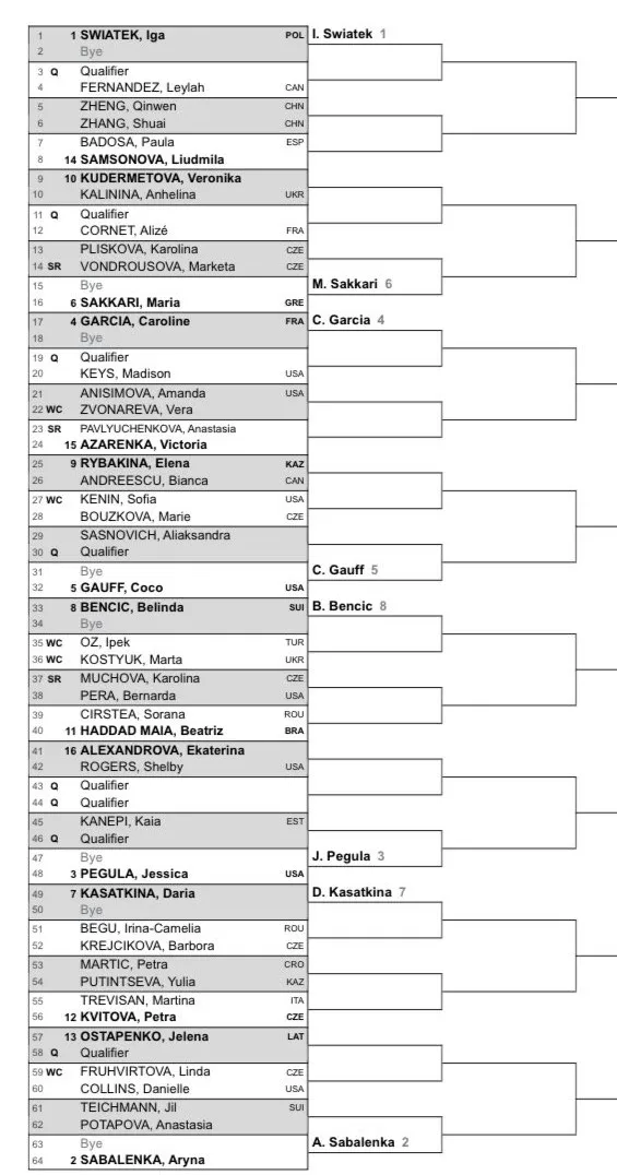 It is a stacked field for the WTA 1000 with some top first round ties including Elena Rybakina - Bianca Andreescu, Paula Badosa - Liudmila Samsonova, Victoria Azarenka - Anastasia Pavlyuckenova and Linda Fruhvirtova - Danielle Collins.