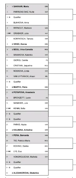 2023 Upper Austria Ladies Linz WTA Draw including Sakkari, Alexandrova, Vekic and Parks