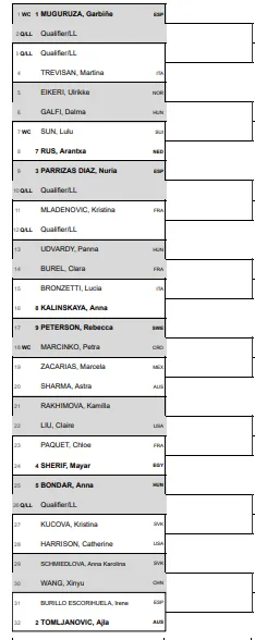 Ajla Tomljanovic is second seed with Anna Kalinskaya, Nuria Parrizas Diaz, Arantxa Rus and Mayar Sherif also in the line-up.
