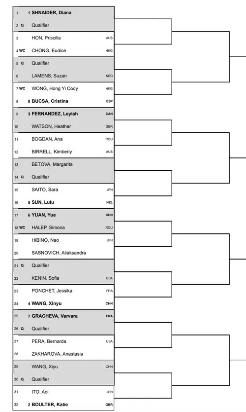 Diana Shnaider is top seed and will face a qualifier in the first round. She lost in the semi-finals of the Pan Pacific Open to Qinwen Zheng. Priscilla Hon could await in the second round.