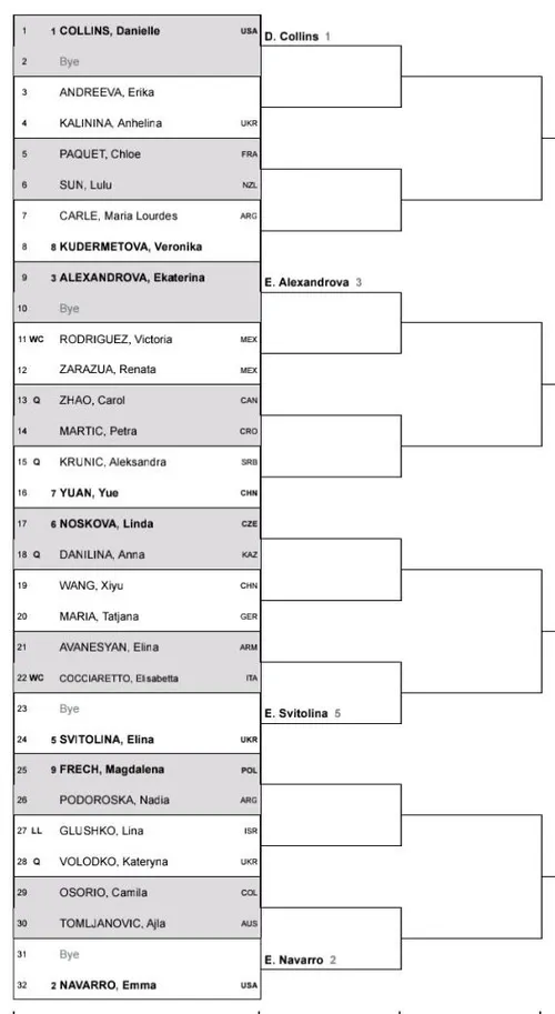 Danielle Collins is top seed. After recent injury issues since the Olympic Games, she returns in Mexico. She faces Erika Andreeva or Anhelina Kalinina in the second round.