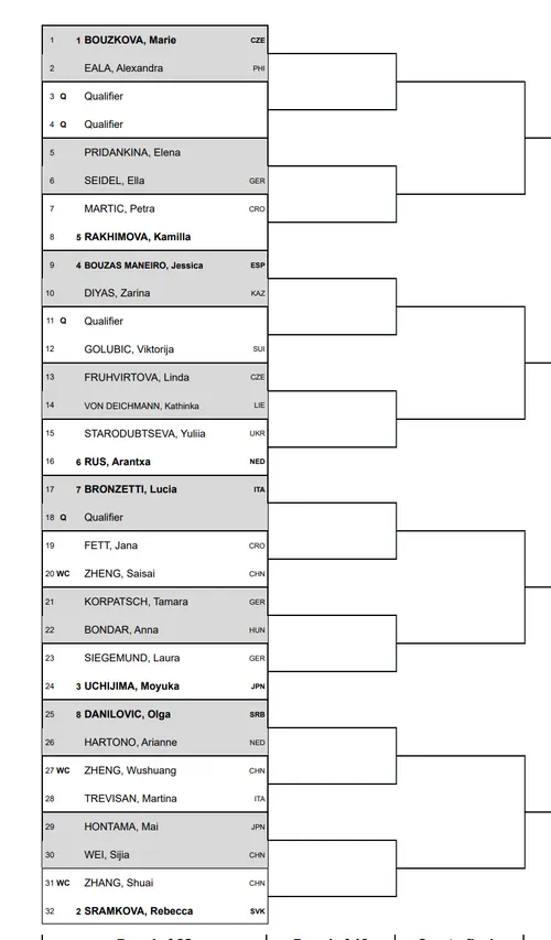 The tournament will not feature 2023 champion Katerina Siniakova, who defeated Bouzkova last year 1-6, 7-6(5), 7-6(4) to claim the title. The most recent withdrawal was third seed