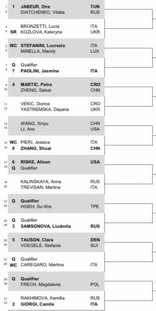 Top seed Jabeur will start off her campaign with a match against Diatchenko. In the 2nd round, she might face Bronzetti or Kozlova with Jasmine Paolini possibly waiting in R3. 2nd seed Giorgi will face a tricky opponent in Rakhimova in R1, French possibly waiting in R2, and Tauson in R3. Either way it's will be an interesting event to observe especially with the WTA Finals implications. Check out the full draw below.