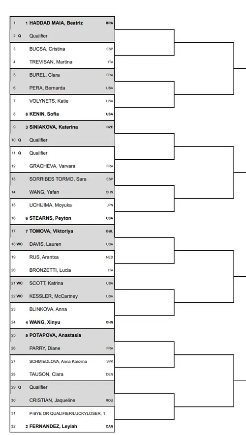 Peyton Stearns is the local hero being from the area and she will face Moyuka Uchijima in the first round then potentially the defending champion Sara Sorribes Tormo or Yafan Wang. Sofia Kenin takes on Katie Volynets in an all American clash, whilst Anastasia Potapova is also involved and could face Olympic standout Anna Karolina Schmiedlova. For many of the top names, they decided against playing this next week due to Flushing Meadows and for some it is about vital match practice.