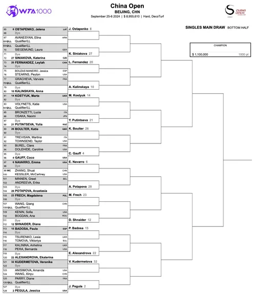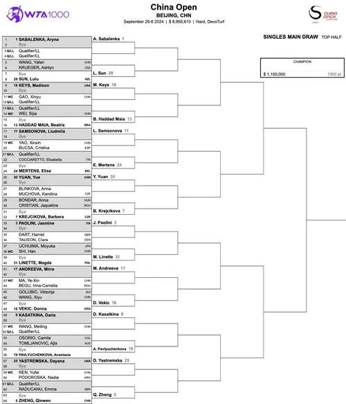 China Open in Beijing. The WTA 1000 event will be