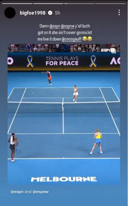 "in 4k too @bigfoe1998," Gauff wrote on her Instagram stories.