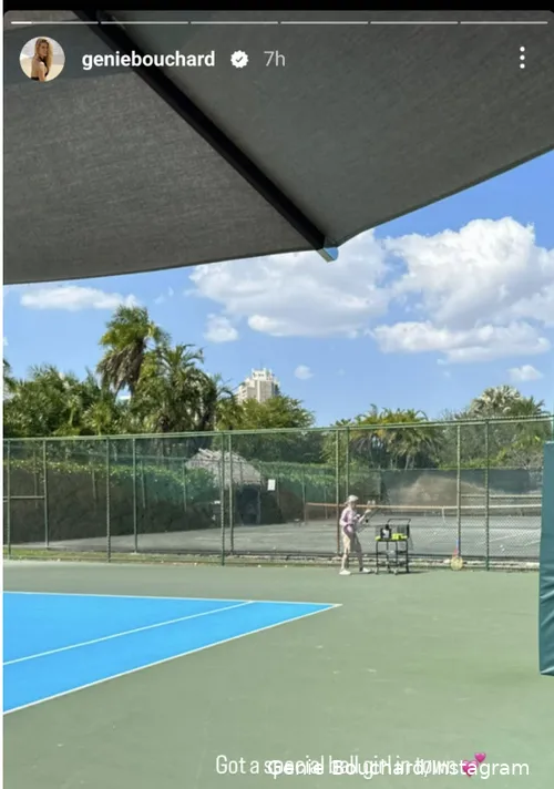 On March 6, Bouchard shared a photo of a practice tennis court, accompanied by a caption that revealed a "special ball girl" was present to assist her during her practice session.