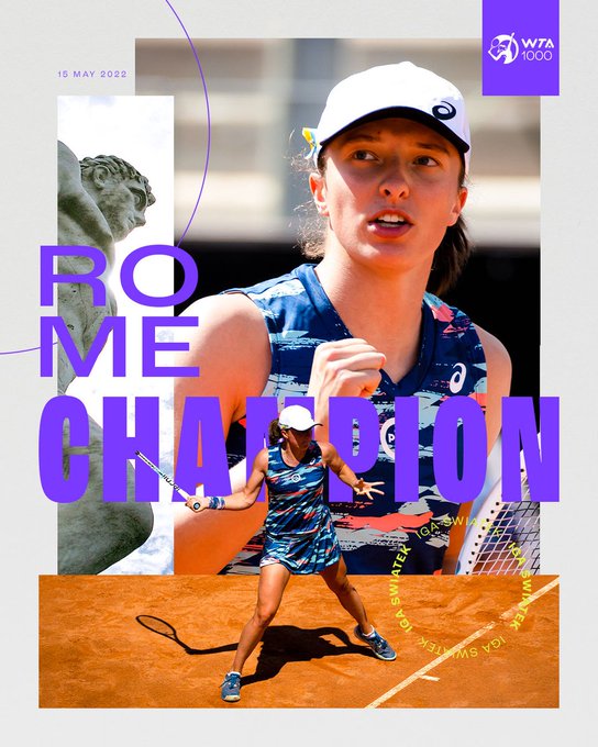 Iga Swiatek went back-to-back in Rome winning the trophy both last year and this year. Last year was an utter thrashing against Pliskova 6-0 6-0 and while this year it's been a bit more competitive the winner was never in doubt. Despite trailing Jabeur 1-2 in the H2H matchup, the Polish player looked like the far better player for the majority of the match.