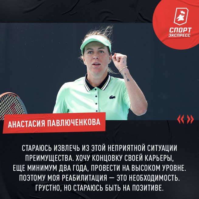 Knee injuries are a nightmare for many athletes with the recovery being very slow and taking a long time. Luckily for Pavlyuchenkova her recurrent knee injury won't need surgery cutting short the time needed to recover but the Russian will still be out for about 10 weeks. She announced the news on social media writing: