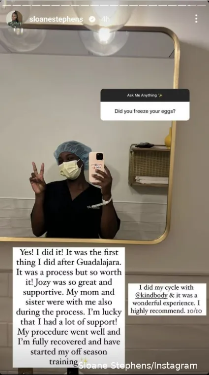 Sloane Stephens recently took to social media to reveal that she has frozen her eggs. She also stated that she has recovered well in time and has begun her off-season training routine.