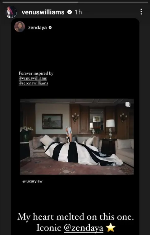 Zendaya would later share the image on her personal Instagram page, stating how much inspiration she drew from the legendary sisters. Williams herself would respond, sharing the picture on her Instagram stories.