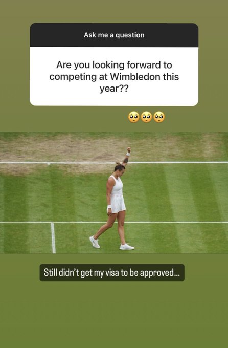 The Belarusian is waiting for a decision as she revealed on Instagram in a Q and A session. A fan asked her whether she's looking forward to playing at WImbledon but she revealed that her visa is yet to be approved. It's highly unlikely that her visa won't be approved in time but it's an unnecessary complication that is certainly an annoyance for her and her fans.