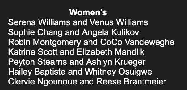 US Open doubles main draw with wild cards. Perhaps Venus can help Serena get a proper send-off.