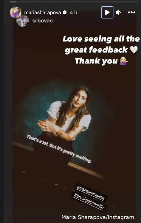 Maria Sharapova took part in the Netflix series Breaking Point and she was very happy that her appearance in the series was warmly welcomed among tennis fans.