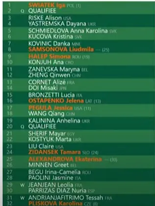 Iga Swiatek as top seed who will face a qualifier in Round One with Dayana Yastremska or Alison Riske to follow in the second round.