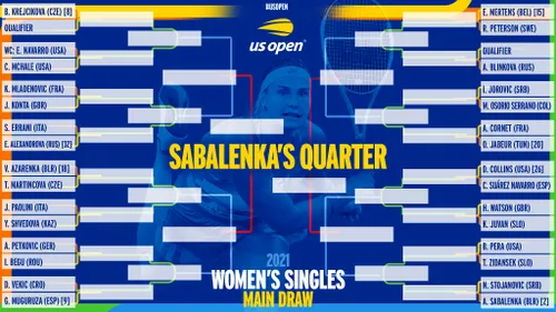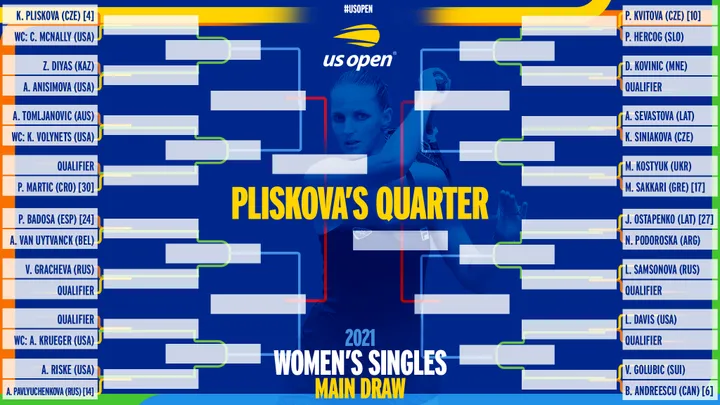Also in her side of the draw are the likes of Paula Badosa facing Alison van Uytvanck and three Grand Slam champions in Petra Kvitova (facing Polona Hercog), Jelena Ostapenko facing Nadia Podoroska and Bianca Andreescu who returns to Flushing Meadows after her triumph two years ago facing Viktorija Golubic.