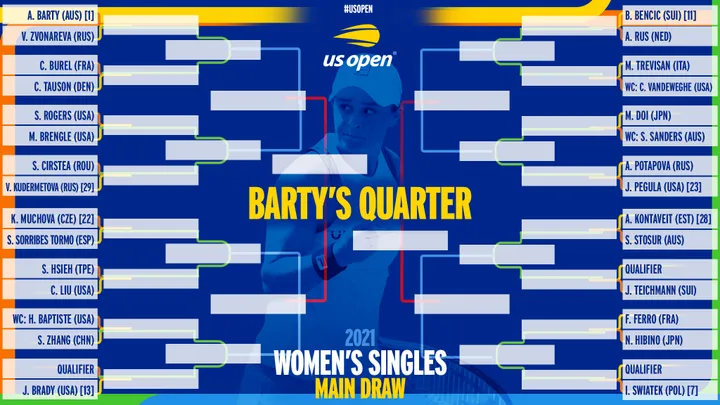 Barty will start as No.1 seed as she aims to add the US Open to her collection after her Wimbledon triumph. She takes on Vera Zvonareva in her opener with talented prospects, Clara Burel or Clara Tauson awaiting.