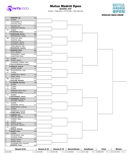 2022 Madrid Open Draw