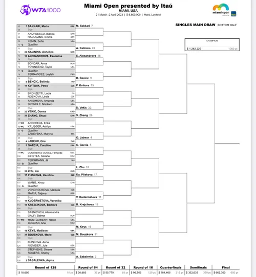 There is also a clash likely set between Marta Kostyuk and Anastasia Potapova which is set to likely garner headlines due to the latter's formal warning over wearing a Spartak Moscow jersey during Indian Wells.