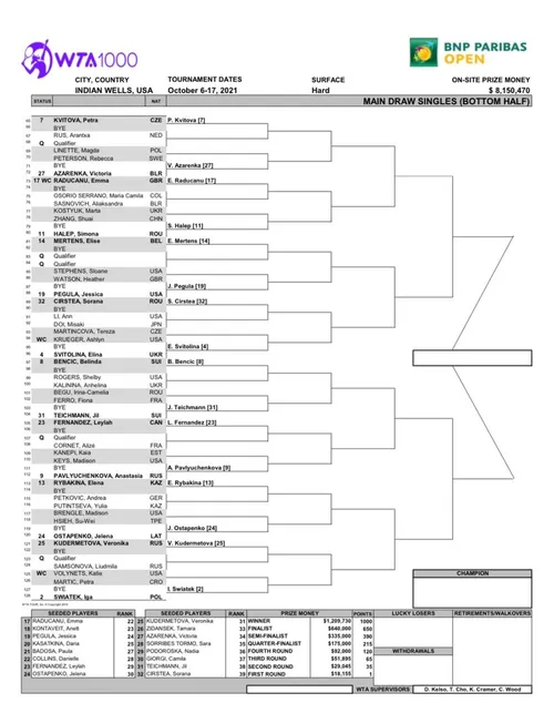 While other potential matches include Garbine Muguruza fresh from her Chicago win facing potentially Ajla Tomljanovic. Kim Clijsters facing Katerina Siniakova with Angelique Kerber awaiting.